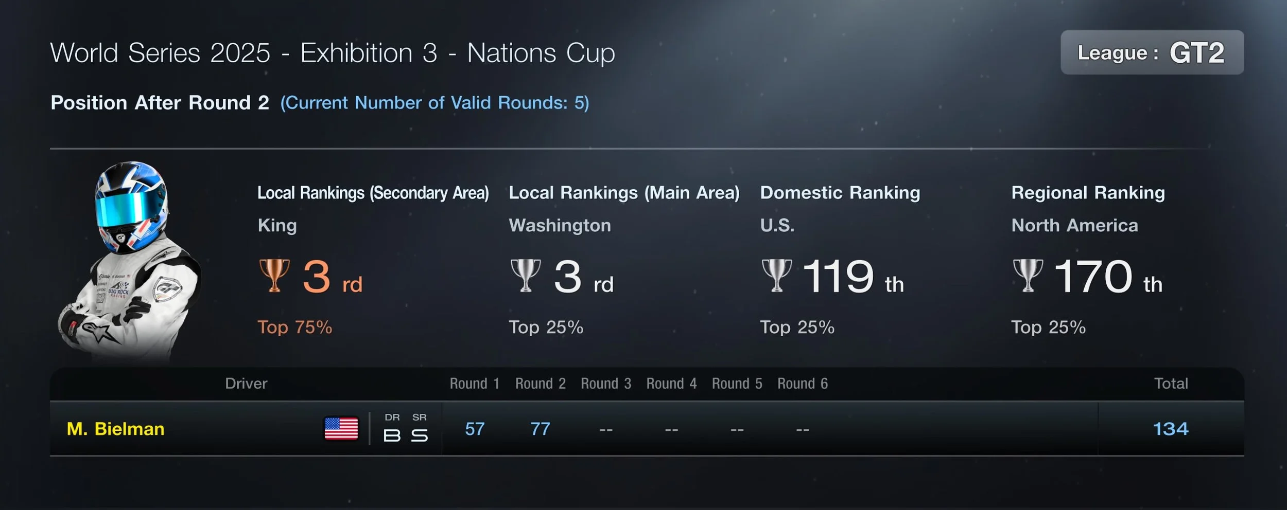 With no need to pit for tires or fuel it’s a 12-lap sprint to the finish. Multiple bouts of torrential rain resulted in wet conditions for the entire race, catching nearly half the field that started on slicks with their proverbial pants down. Pushing consistency over outright pace I found myself back in second place and reeling in the leader. With a handful of laps remaining I was within striking distance of P1 when disaster struck. Taking too much kerb into Degner put me on the slippery edge of the track, resulting in a slide off circuit at the outside of turn 9. Exiting with dirty tires and out of rhythm, I touch the grass on the inside just before the hairpin before sliding sideways across the track and rejoining in 5th.